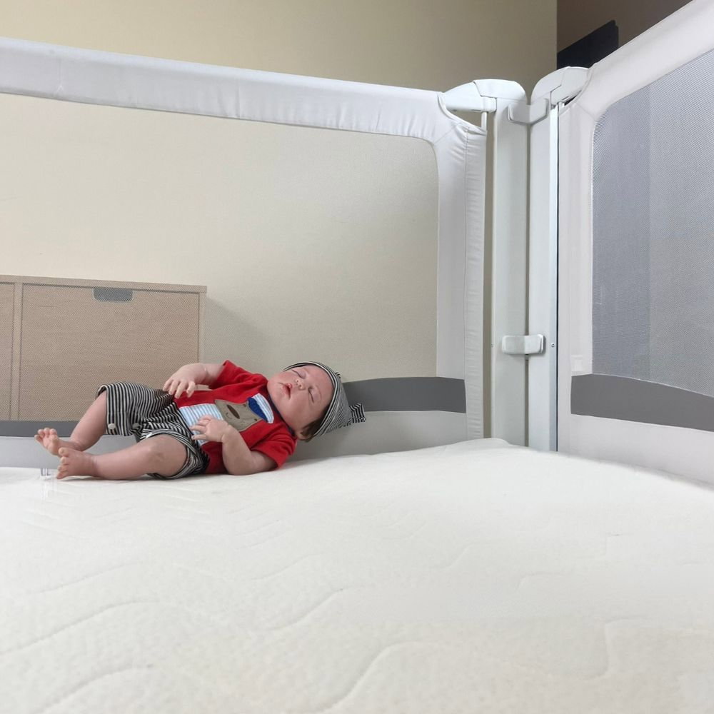 Poți alege dintre 8 dimensiuni (de la 90 până la 200 cm), adaptate oricărei saltele. Barierele se pot ridica până la 97 cm pentru a proteja chiar și copiii care stau în picioare.