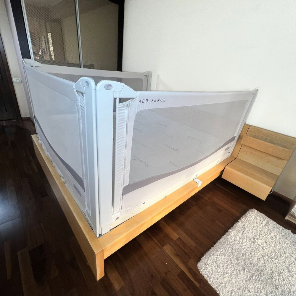 Poți alege dintre 8 dimensiuni (90–200 cm), pentru a se potrivi exact saltelei patului. Bariera se ajustează până la 97 cm înălțime, pentru a proteja chiar și copiii care se ridică în picioare.