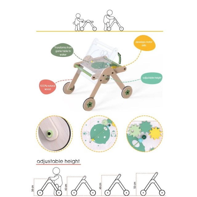 Antepremergatorul 2 in 1 din lemn de la MamaToyz poate fi transformat cu usurinta intr-o masuta pentru activitati. Acest produs este un adevarat suport si asistent pentru copilul tau in timp ce face primii pasi.