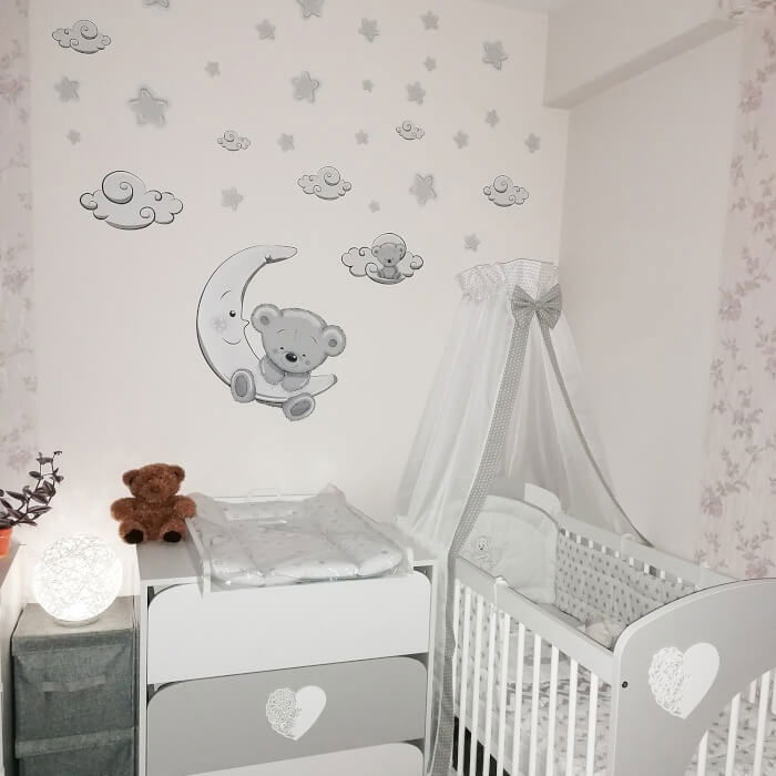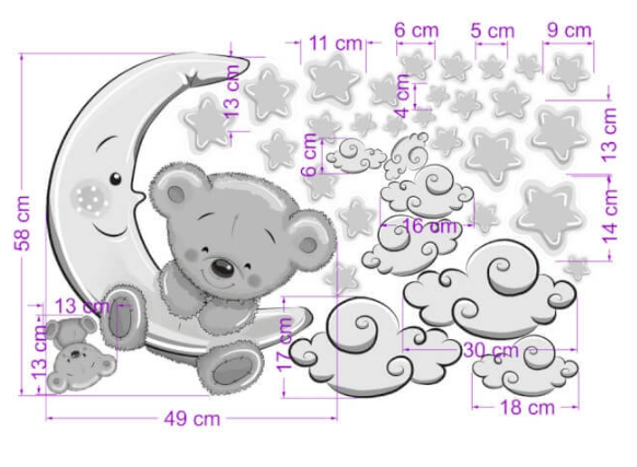 - 1 x autocolant ursulet pe luna (h. 58 x w. 49 cm)