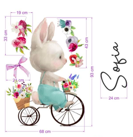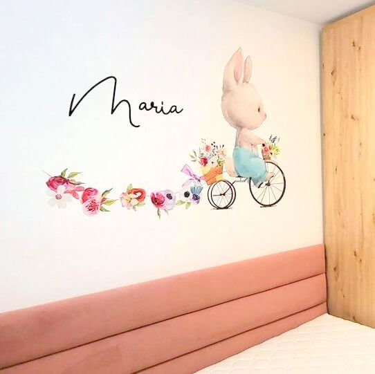 Autocolant pentru perete cu nume - iepuras cu flori este perfect pentru orice spatiu, adaugand un strop de personalitate si stil. Fabricat din materiale de inalta calitate, este ideal pentru a imbunatati decorul si a crea o atmosfera placuta in casa ta. Usor de aplicat si de intretinut, acest autocolant transforma orice camera intr-un colt de paradis.