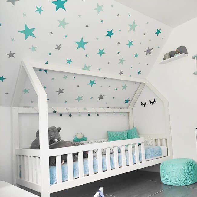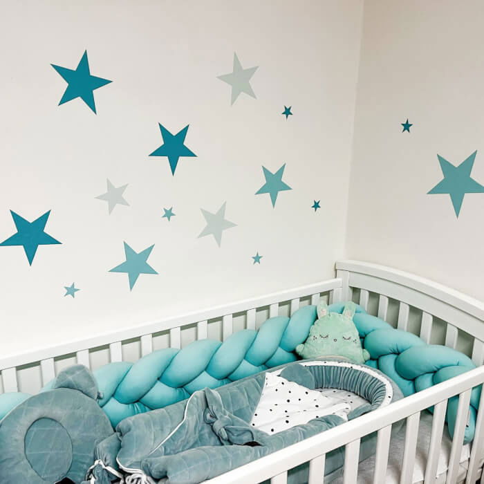 Adauga un strop de magie si eleganta in casa ta cu autocolantul de perete - Constelatie turcoaz, 100 de stele, si transforma orice spatiu intr-un loc plin de vise si fantezie!
