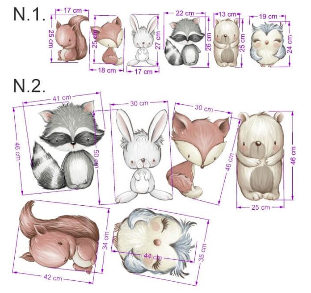 N.1: Inaltimea animalutelor este de la 25 cm pana in 27 cm. Latimea dupa desfacere aprox. 120 cm