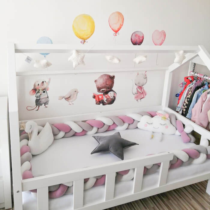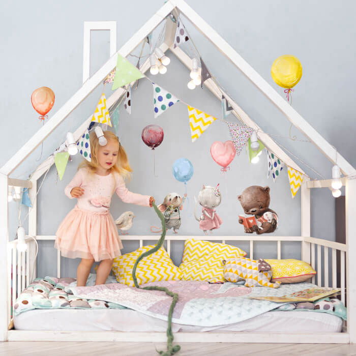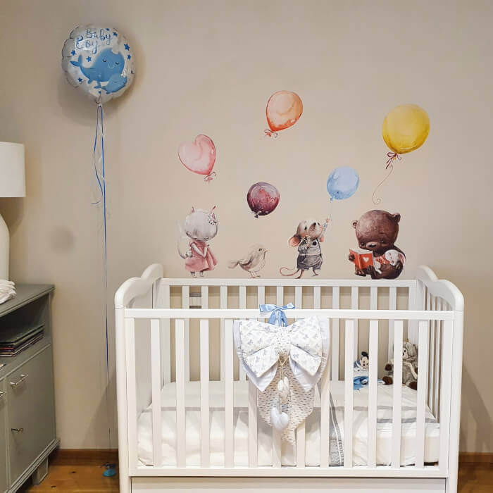 Autocolante deasupra patului - animale cu baloane in culori pastel