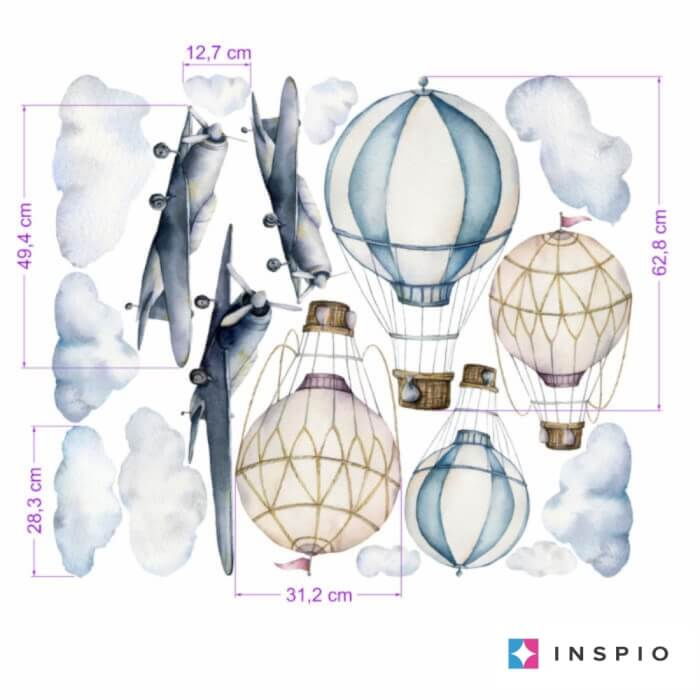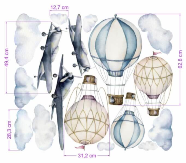 Acest set de autocolante pentru perete - avioane si baloane in acuarela este perfect pentru orice spatiu, adaugand un strop de personalitate si stil. Fabricat din materiale de inalta calitate, este ideal pentru a imbunatati decorul si a crea o atmosfera placuta in casa ta. Usor de aplicat si de intretinut, acest autocolant transforma orice camera intr-un colt de paradis.
