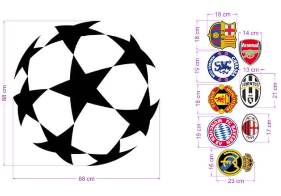 Autocolantele pentru perete - Echipe de fotbal UEFA sunt perfecte pentru orice spatiu, adaugand un strop de personalitate si stil. Fabricate din materiale de inalta calitate, aceste autocolante sunt ideale pentru a imbunatati decorul si a crea o atmosfera placuta in casa ta. Usor de aplicat si de intretinut, autocolantele transforma orice camera intr-un colt de paradis.