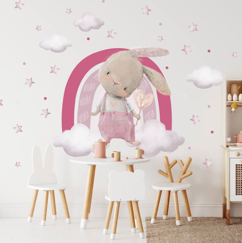Cumpara Autocolante pentru perete - iepuras, curcubeu in culori roz de la Empria.ro pentru o casa vesela!