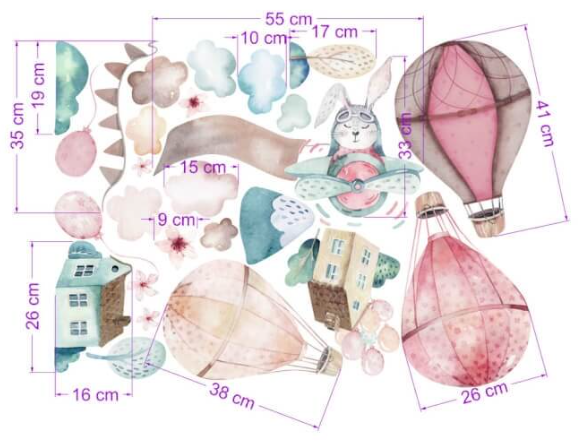 - 1 autocolant avion cu accesorii: 35 x 56 cm