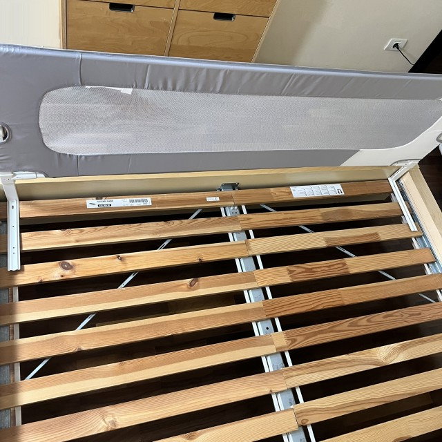 Dacă patul are o „bordură” (laterală pat) mai înaltă de 18 cm, bariera e posibil să nu se potrivească. Recomandăm saltele cu grosimea 15-25 cm.
