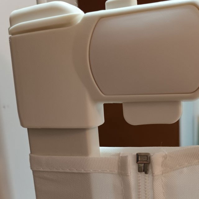 Înălțimea barierei (70.5–89 cm) se reglează simplu, cu buton de reglare, fără a fi nevoie să o demontezi. Ajustează corect bariera în funcție de grosimea saltelei, evitând spațiile prin care copilul s-ar putea strecura.
