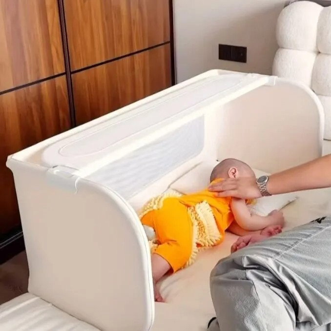 O singură achiziție, mai multe scenarii: barieră pentru patul de acasă, pătuț atașabil pentru perioadele când vrei copilul aproape și variantă portabilă pentru drum.