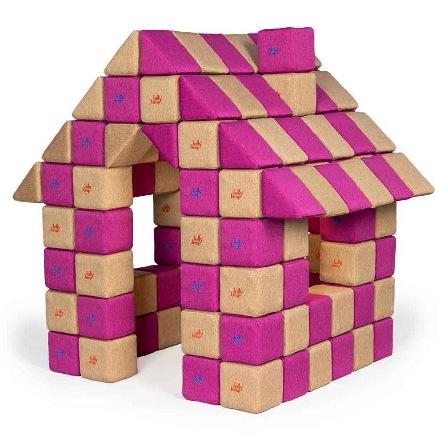 Cu peste 150 de piese, JollyHeap Joy permite construirea unor structuri masive – chiar dispozitive de peste 2 m înălțime – cum ar fi girafe, turnuri, fântâni de joacă și mobilier modular ghidat de motivație și colaborare.