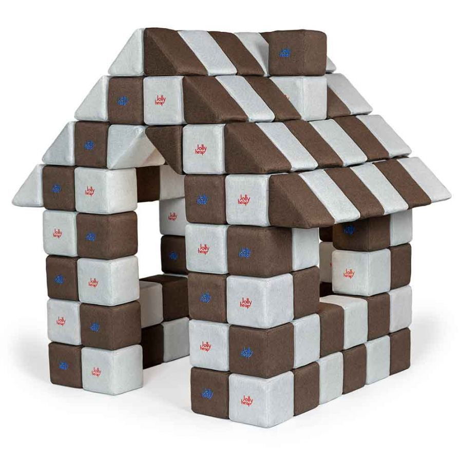 Cu peste 150 de piese, JollyHeap Joy permite construirea unor structuri masive – chiar dispozitive de peste 2 m înălțime – cum ar fi girafe, turnuri, fântâni de joacă și mobilier modular ghidat de motivație și colaborare.