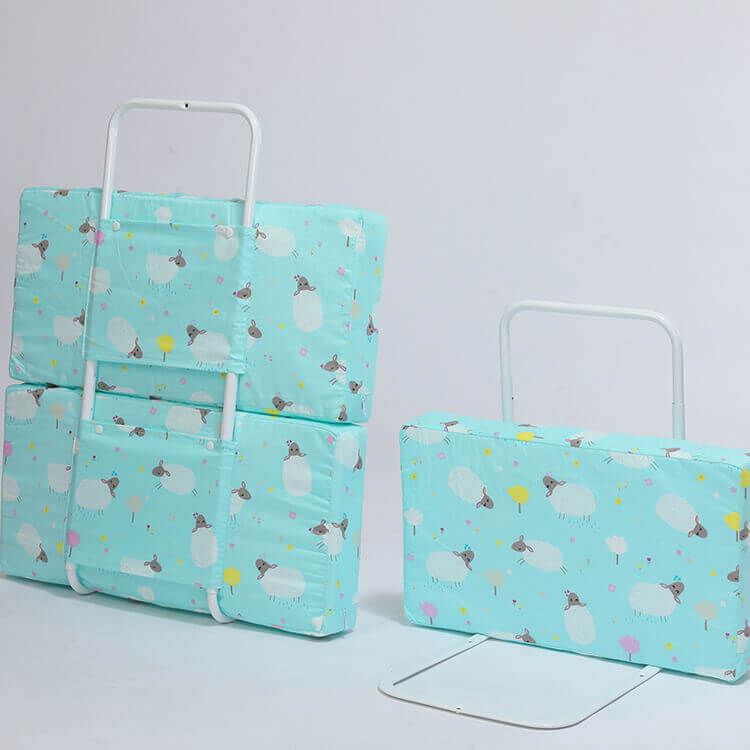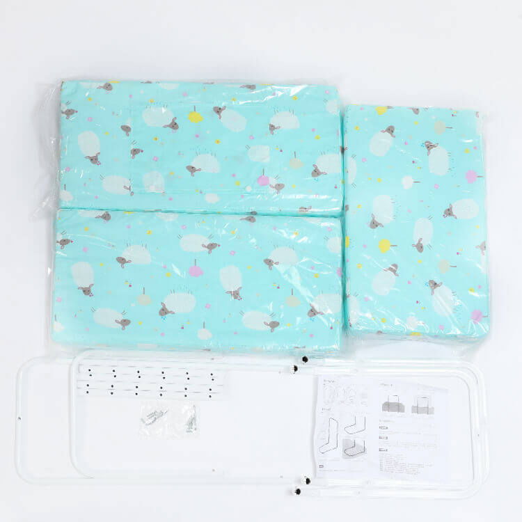Fiecare mini-bumper are un cadru metalic, o parte se introduce sub saltea, iar cealalta parte impiedica deplasarea pernei in afara patului.