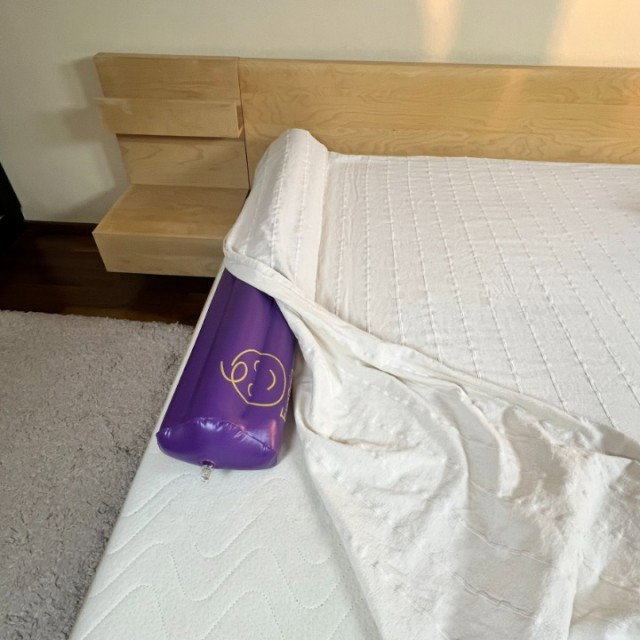 Banda galbenă este stabilă pe saltea, iar bumperul nu alunecă, lucru de care mă temeam.