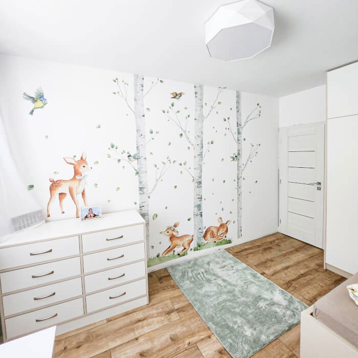 Caprioare jucause in padure de mesteacan - autocolante pentru camera copiilor este perfect pentru orice spatiu, adaugand un strop de personalitate si stil. Fabricat din materiale de inalta calitate, este ideal pentru a imbunatati decorul si a crea o atmosfera placuta in casa ta. Usor de aplicat si de intretinut, acest autocolant transforma orice camera intr-un colt de paradis.