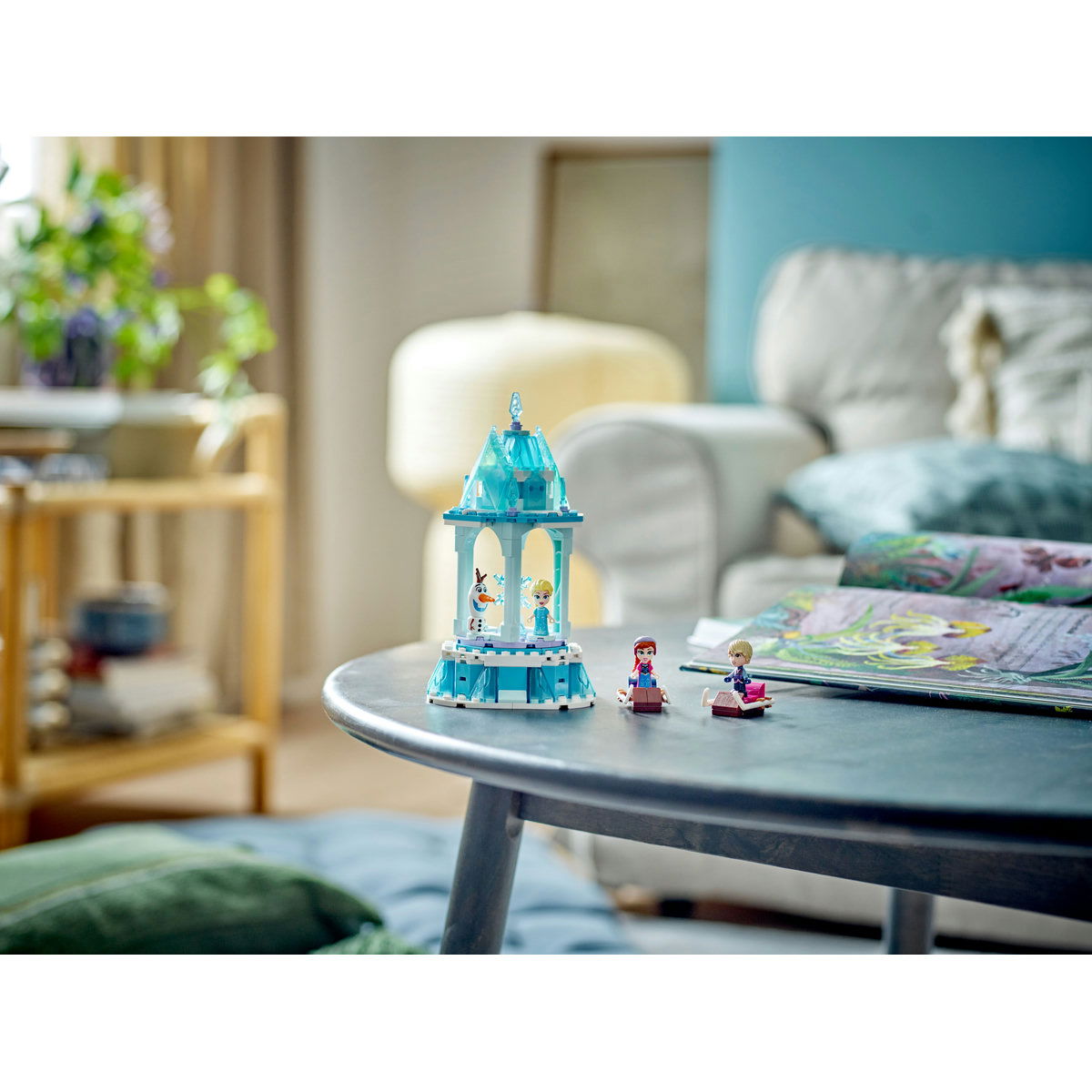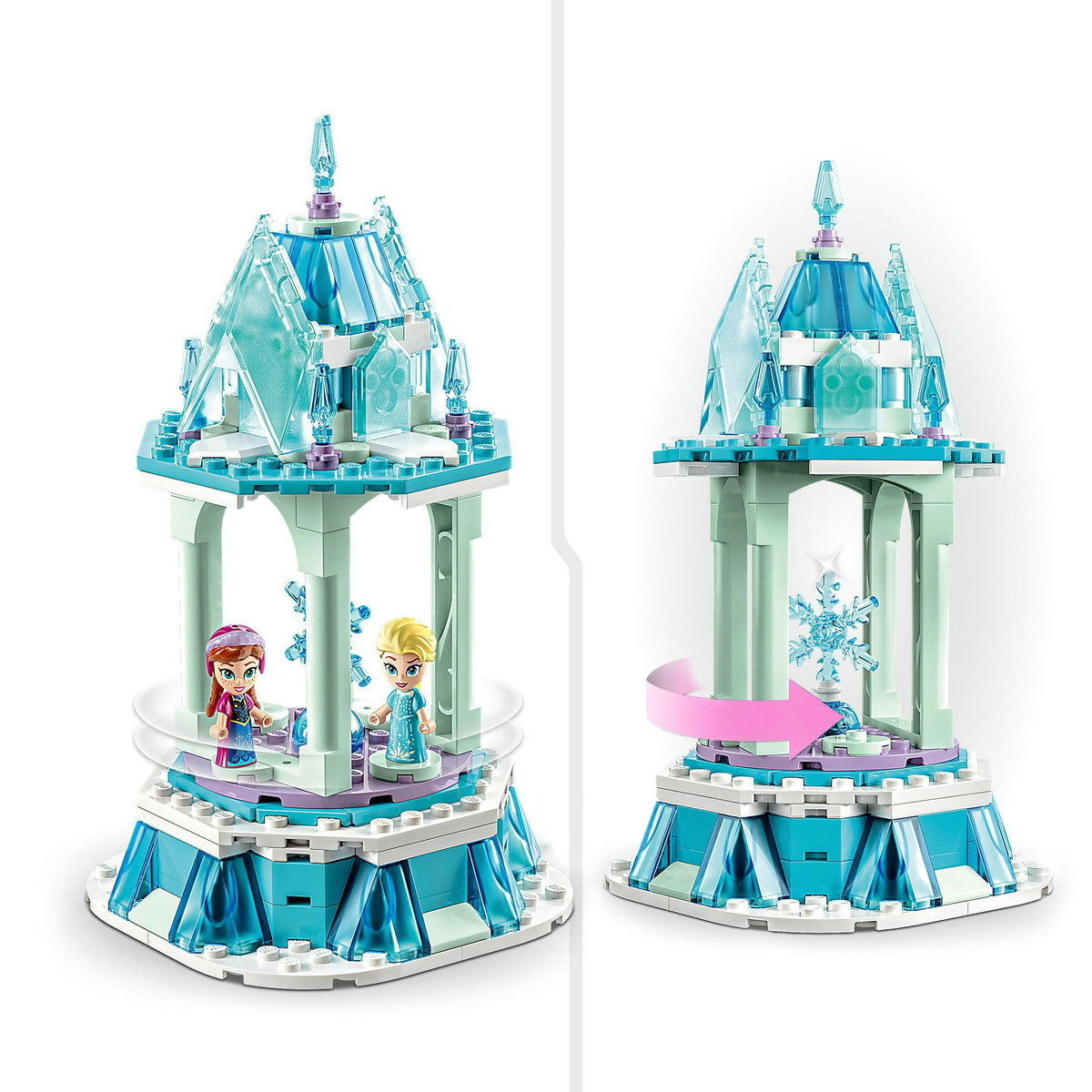 Bucura fanii Disney de 6+ ani cu setul pentru joaca si etalare LEGO® Disney Caruselul magic al Annei si al Elsei (43218). Cu un carusel rotitor inspirat de emblematicul castel de gheata al Elsei, setul include 2 minisanii, 3 figurine micropapusa LEGO si o figurina LEGO reprezentand personajul Disney Olaf. Pe masura ce construiesc, copiii se pot bucura de o aventura usoara si intuitiva cu aplicatia LEGO Builder, in care pot apropia si roti modelele in 3D, salva seturi si monitoriza propriul progres.