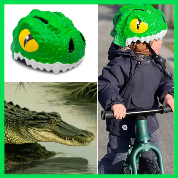 Casca bicicleta copii, model 3D, dimensiune reglabila 49-55 cm, 2-7 ani, Crocodile Verde