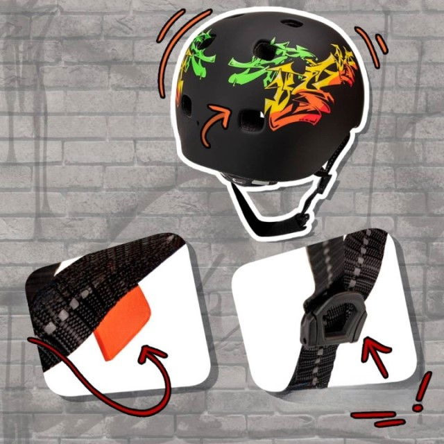 Protectia sport este prevazuta cu un sistem de curele reflectorizante si are o dimensiune reglabila intre 52 si 56 cm.