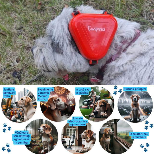 Atentie! Castile antifonice nu blocheaza complet sunetul. Ele asigura protectia urechilor sensibile ale cainelui tau impotriva zgomotelor foarte puternice.