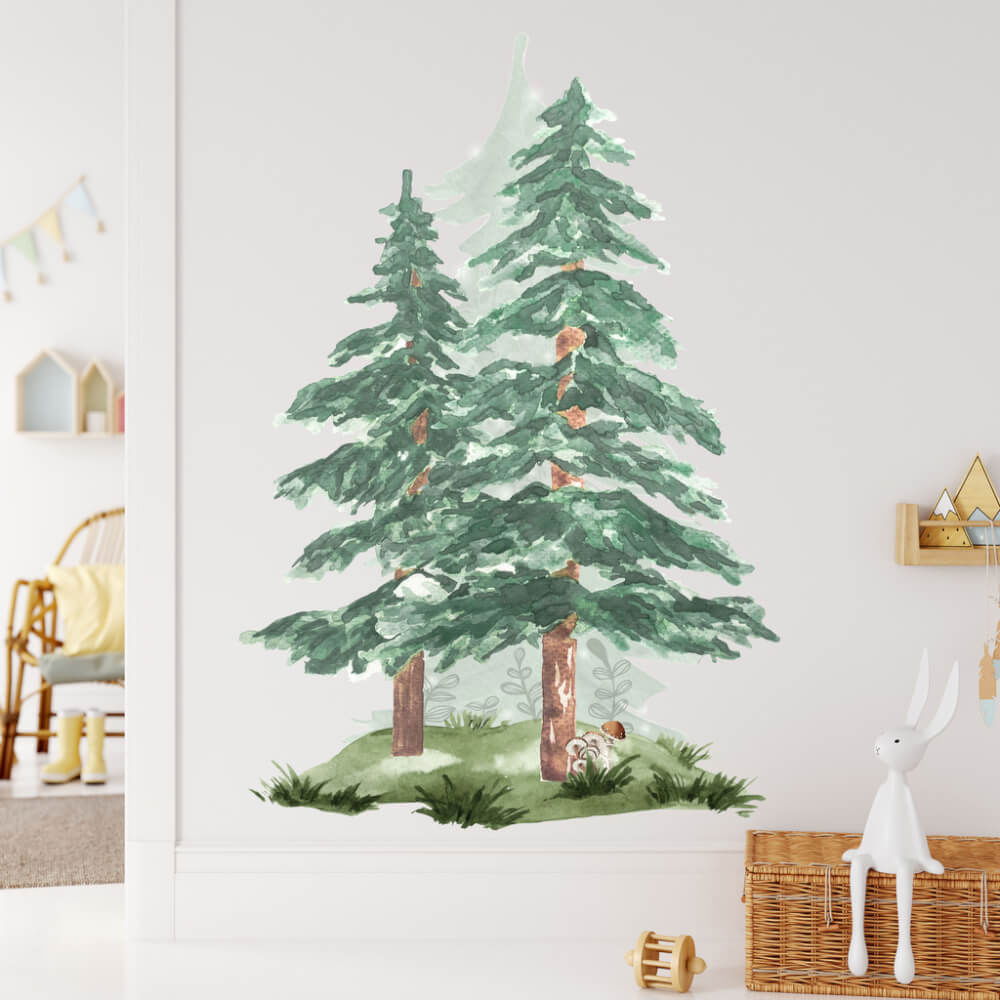 Cumpara Copaci coniferi - autocolante in acuarela pentru perete, verde de la Empria.ro pentru o casa vesela!