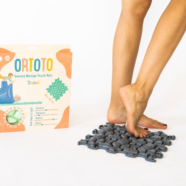 Covorasul ortopedic disponibil in magazinul online Empria este acoperit cu diverse modele de pietre de dimensiuni variate, menite sa sprijine dezvoltarea abilitatilor senzoriale si motorii.