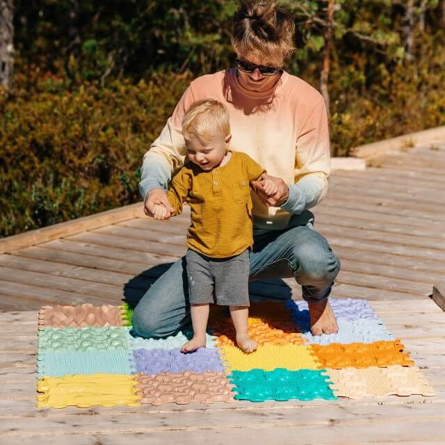 Covorasul ortopedic disponibil in magazinul online Empria este acoperit cu diverse modele de pietre de dimensiuni variate, menite sa sprijine dezvoltarea abilitatilor senzoriale si motorii.