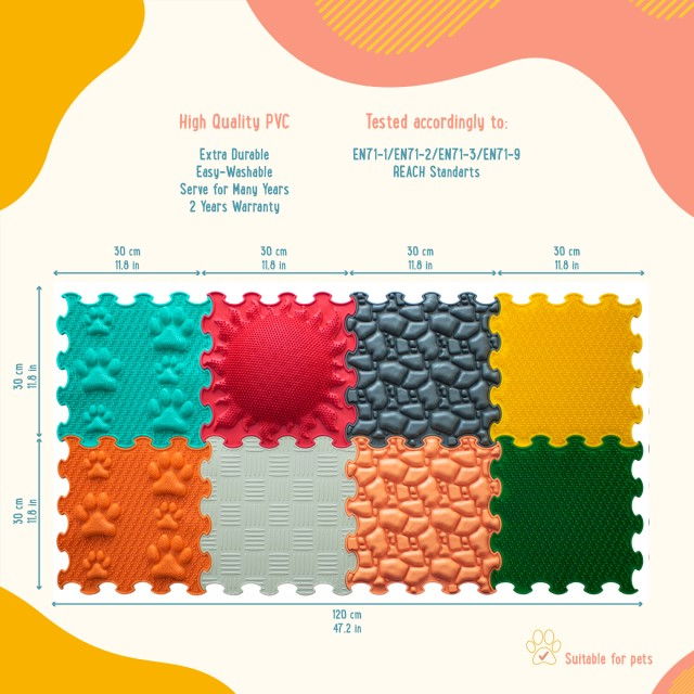 Covorasul, disponibil in magazinul online Empria, include 8 piese de puzzle: