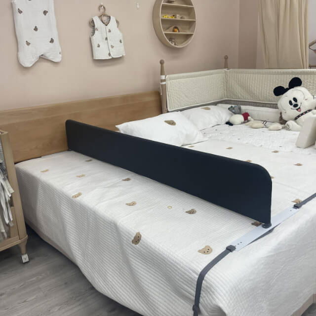 Nimeni nu vă obligă să montați bariera chiar pe mijloc. Puteți conveni împreună unde să delimitați spațiul – fie mai la stânga, fie mai la dreapta, conform nevoilor fiecăruia. Durează doar câteva secunde să ajustați poziția: deblocați cataramele, glisați separatorul, apoi blocați din nou. Totul pentru ca fiecare să se bucure de somn neperturbat, dar fără a pierde apropierea și tandrețea din cuplu.