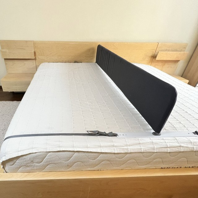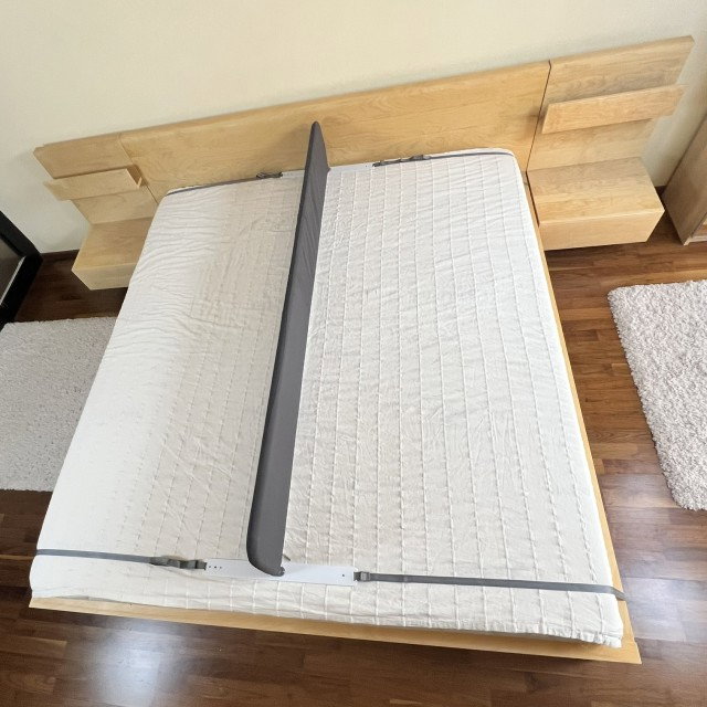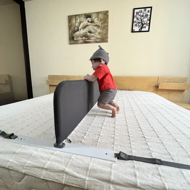 Comandând acest separator, obțineți o zonă bine delimitată în propriul pat, fără a renunța la intimitatea de cuplu. Dacă doriți, vă puteți strecura mâna pe sub barieră pentru a vă ține de mână cu partenerul. În plus, puteți glisa separatorul când vreți spațiu larg – se deblochează cele 2 catarame de pe chingile de prindere și se “impinge” bariera la o margine a patului.