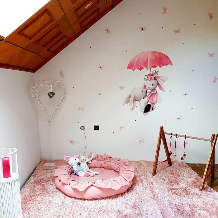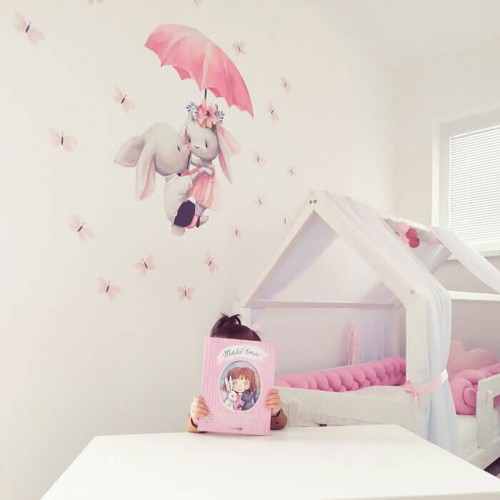 Adauga un strop de magie si caldura in camera copilului tau cu autocolantele Iepurasi care Zboara pe o Umbrela si transforma orice spatiu intr-un loc plin de frumusete!