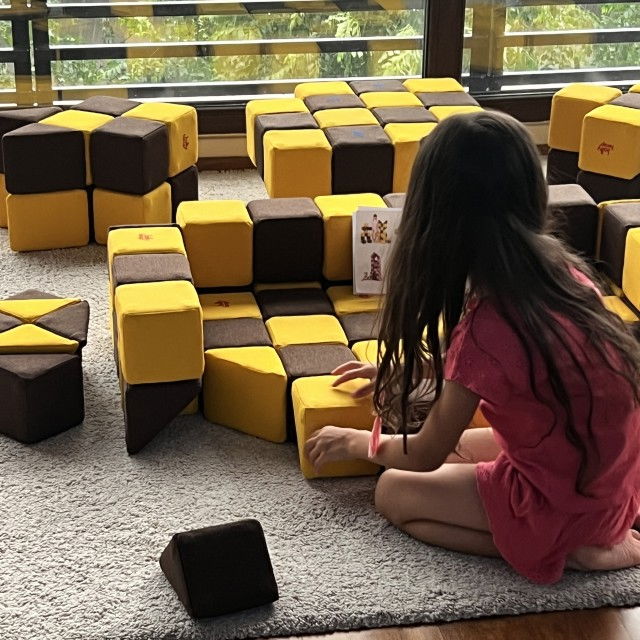 Da, cuburile sunt moi, mari și sigure, potrivite pentru copii începând cu vârsta de 1 an, sub supravegherea unui adult.