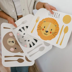 primesti cadou un suport de masa adorabil, ajutand copiii sa invete cum sa aseze corect tacamurile. Acest set protejeaza masa de murdarie si zgarieturi, fiind perfect asortat cu modelul covorasului. Alege dintr-o varietate de modele pentru a adauga un strop de bucurie si organizare in timpul mesei! Daca alegi personalizarea, atat covorasul, cat si suportul de masa vor avea numele copilului.