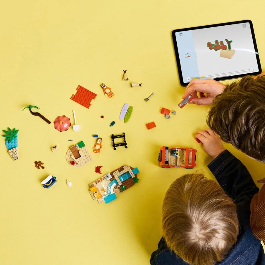 Linie: LEGO® Bluey • Cod: 11202 • Varsta: 4+ ani • Data lansarii: 1 iunie 2025 • Include: masina familiei cu acoperis rabatabil, 2 placi de surf, scena de plaja cu accesorii • Personaje: Blue, Bingo, Chilli • Joc: constructie, roluri, creativitate.