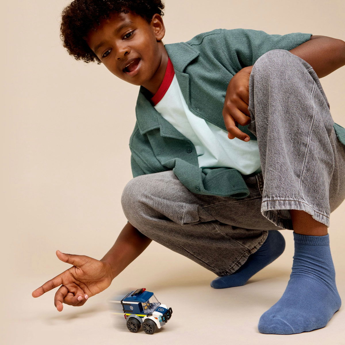 Setul include si o minifigurina politist junior LEGO City Vehicule, care intra perfect in cabina stoferului, pentru ore intregi de joaca de rol.