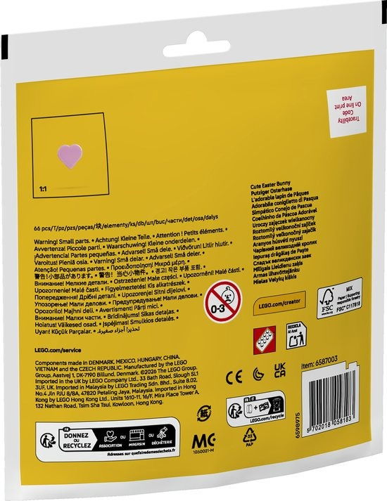 Descopera bucuria constructiei si joaca creativa, pas cu pas. Setul Iepuras dragalas de Paste (30716), 66 piese este gandit pentru joaca, invatare prin explorare si momente frumoase in familie. Recomandat pentru 6+ ani. Contine 66 piese originale LEGO.