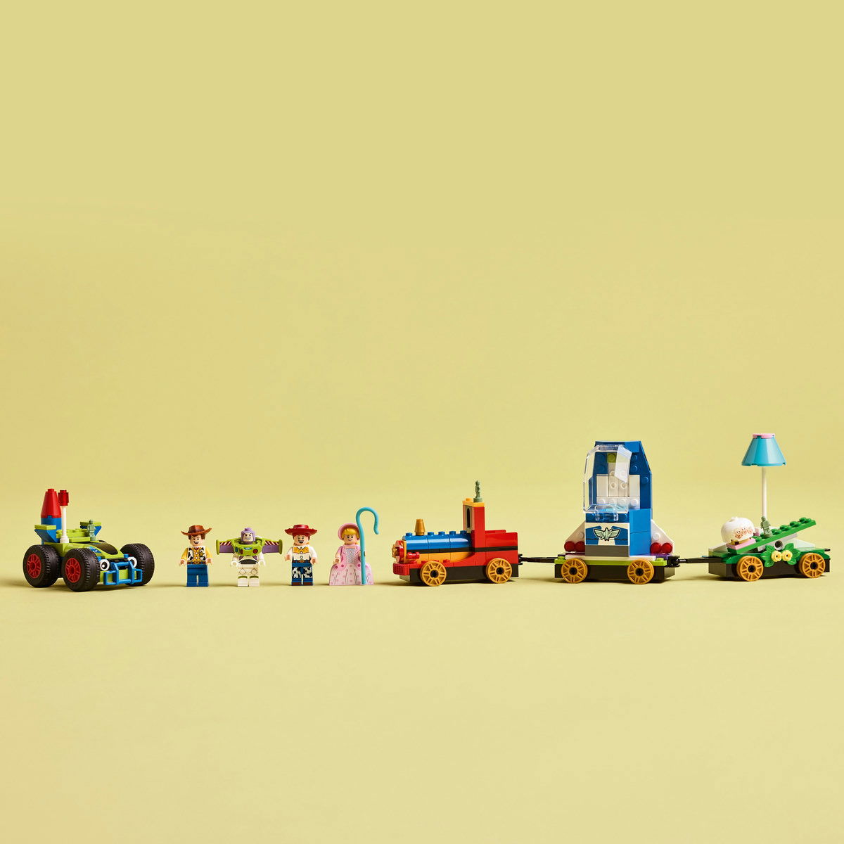 Copiii de 4 ani si mai mari care adora vehiculele si trenurile se vor bucura de toate acestea si de multe altele in setul de constructie LEGO| Disney Tren aniversar si masina RC din Toy Stor Modelul include elemente interactive si accesorii tematice pentru joaca captivanta.