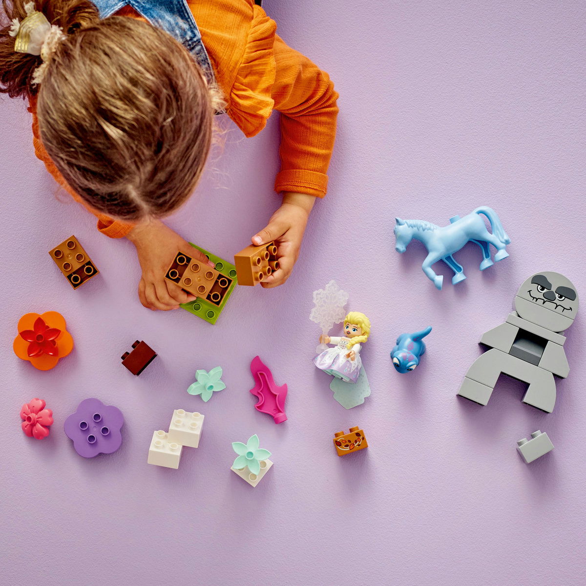 Introdu-i pe cei mici intr-o lume a aventurii cu jucaria de constructie LEGO® DUPLO® | Disney Elsa si Bruni in padurea fermecata (10418), conceputa pentru copii de 2+ ani. Aceasta jucarie de constructie ii poarta pe pres Modelul include elemente interactive si accesorii tematice pentru joaca captivanta.
