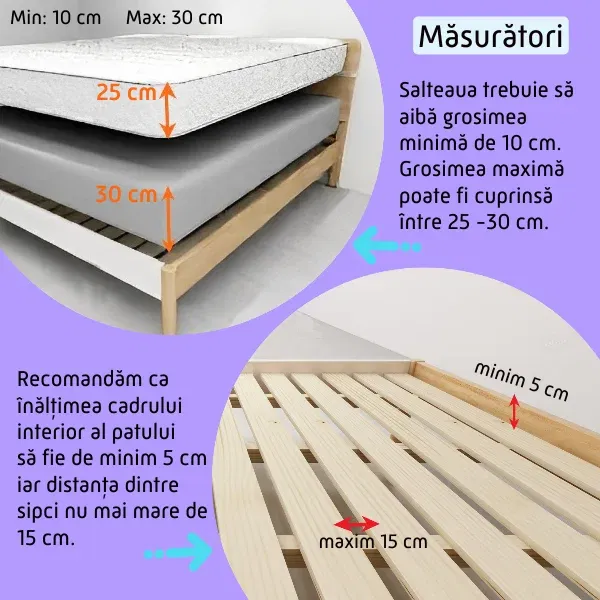 Standardele de siguranță ale produsului prevăd utilizarea pe paturi ce au saltele cu grosimea între 10 și 30 cm.