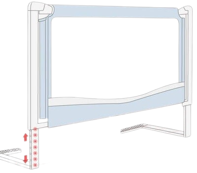 Înălțimea barierei se masoară de la nivelul inferior al saltelei. Astfel, o barieră setata pe înălțimea maximă de 100 cm, montată pe o saltea cu grosimea de 30 cm, va avea o înălțime de 70 cm de la nivelul saltelei.