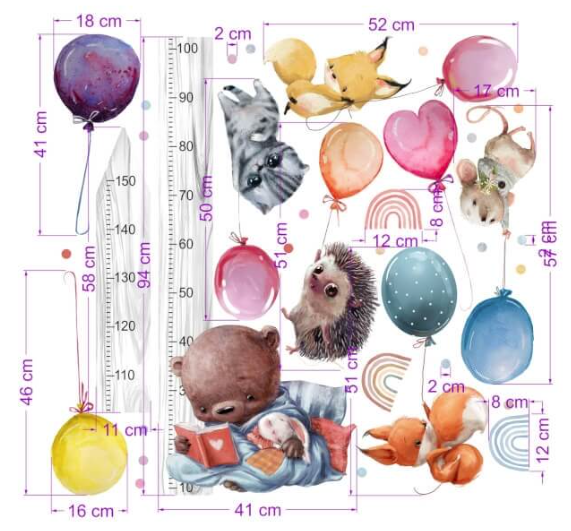 Metrul pe perete pentru copii - animale zburatoare si baloane este perfect pentru orice spatiu, adaugand un strop de personalitate si stil. Fabricat din materiale de inalta calitate, este ideal pentru a imbunatati decorul si a crea o atmosfera placuta in casa ta. Perfect pentru a urmari cresterea copiilor intr-un mod distractiv si colorat. Usor de aplicat si de intretinut, acest autocolant transforma orice camera intr-un colt de paradis.