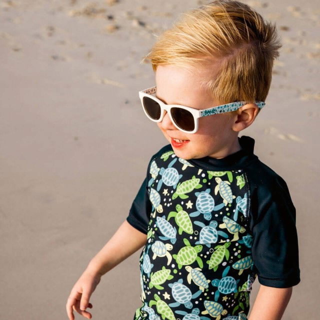 Ochelarii de soare pentru bebelusi J-Banz Beachcomber sunt conceputi special pentru a oferi confort si protectie solara bebelusilor cu varsta cuprinsa intre 1 si 2 ani. Acestia vin intr-o varietate de culori si modele, asigurandu-se ca fiecare parinte poate gasi o optiune care sa se potriveasca perfect cu stilul unic al copilului sau. Fabricati din nylon flexibil, ochelarii sunt dotati cu lentile polarizate ce blocheaza lumina reflectata de suprafete precum apa sau asfaltul, reducand astfel stralucirea si imbunatatind vizibilitatea.