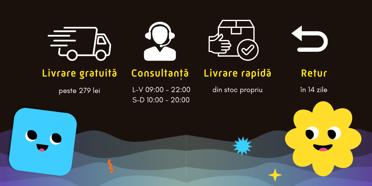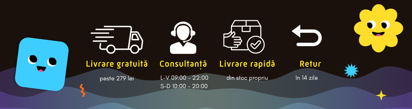 Expediem rapid din stoc, iar dacă nu ești mulțumit de alegere, politica de retur este simplă și clară. Suntem aici să te ajutăm cu recomandări înainte și după achiziție, astfel încât copilul tău să fie în siguranță, iar tu să ai liniște.