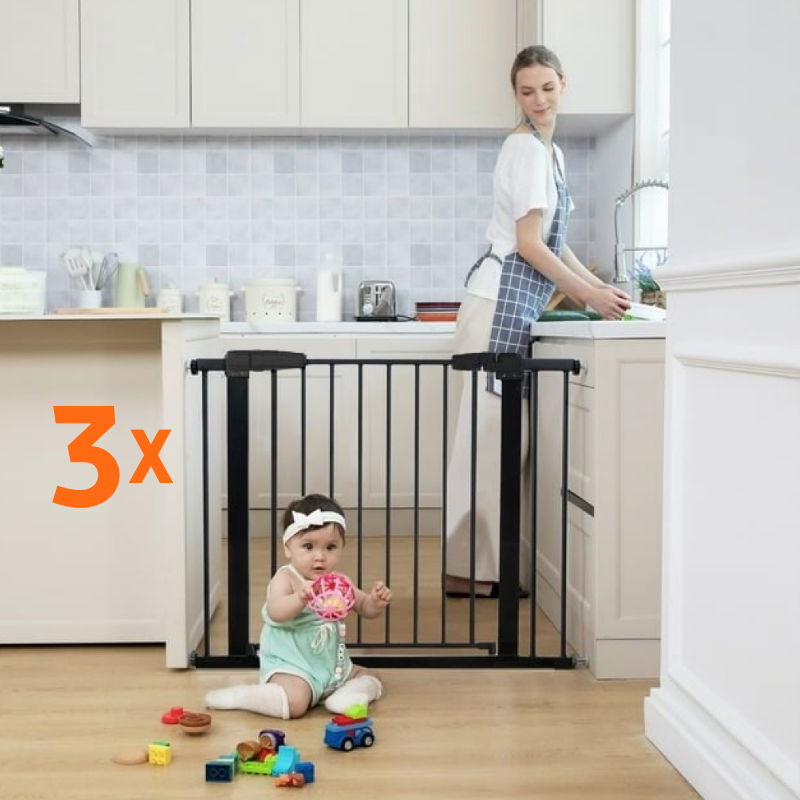 Transforma orice locuinta intr-un spatiu mai sigur cu acest pachet de 3 garduri de protectie premium, proiectate pentru a limita accesul copiilor in zone periculoase: scari, bucatarii sau balcoane. Fiecare poarta are latime reglabila intre 76 si 79 cm si inaltime de 74 cm, fiind ideala pentru utilizare atat acasa, cat si in centre de educatie timpurie.