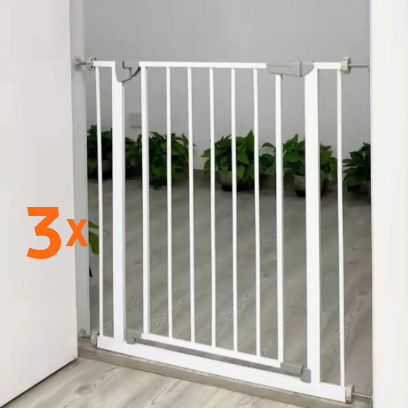 Asigura un mediu sigur pentru copilul tau in mai multe incaperi din locuinta, cu acest pachet de 3 porti de siguranta reglabile, ideale pentru usi si scari. Fiecare poarta are latimea reglabila intre 71-77 cm si ofera protectie fiabila impotriva accesului in zone periculoase.