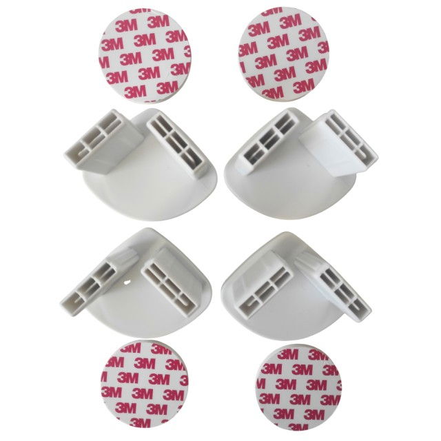 Transformare în țarc: unește cele 4 bariere într-un dreptunghi de aproximativ 150 × 200 cm. Folosește conectorii incluși la capetele fiecărei bariere și lipește talpicile pe podea (banda 3M este deja aplicată pe suport).