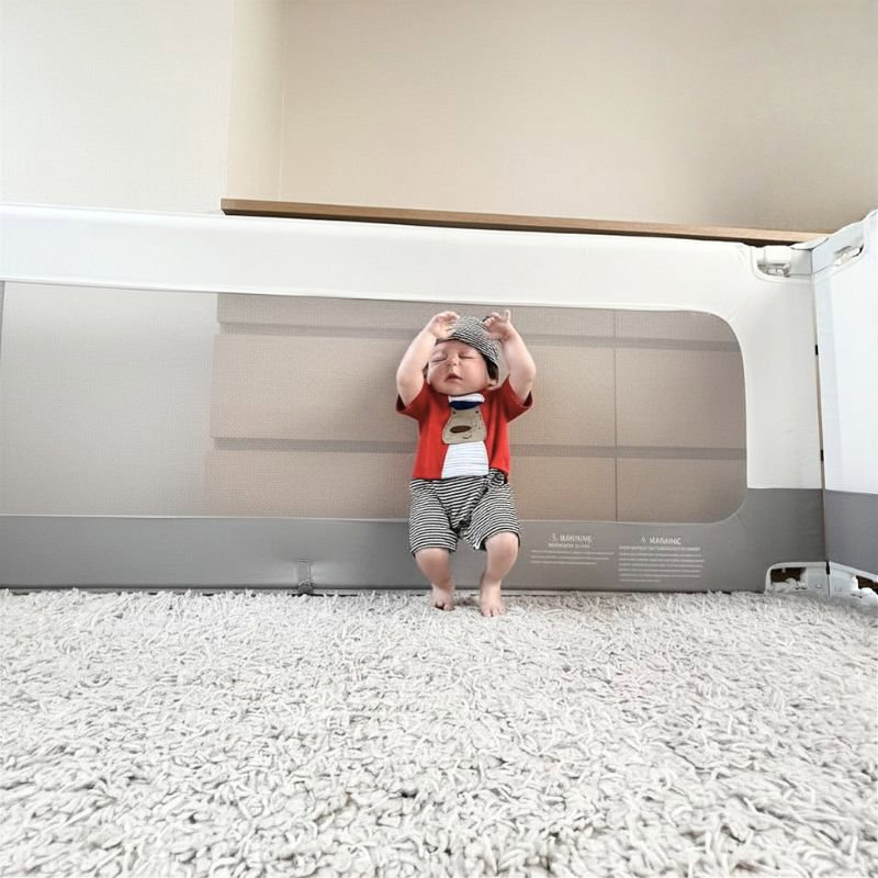 Cu 4 bariere (2×198 cm + 2×158 cm), patul tău de 200×160 cm devine un refugiu sigur, iar prin transformarea în țarc, copilul se bucură de un spațiu de joacă generos și părinții de un moment de respiro.