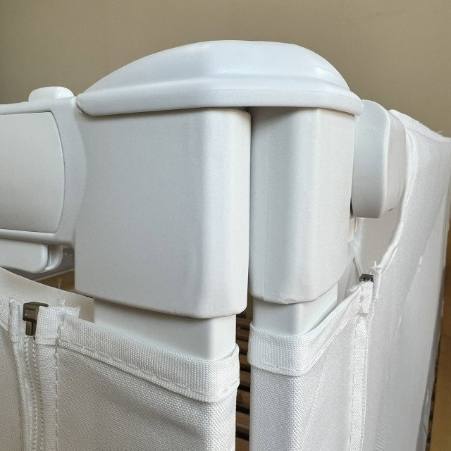 Bariera se montează pe somiera patului cu două picioare metalice în forma “L” (partea care intră sub saltea are ~28 cm). Asamblarea se face în câțiva pași simpli, conform instrucțiunilor incluse.