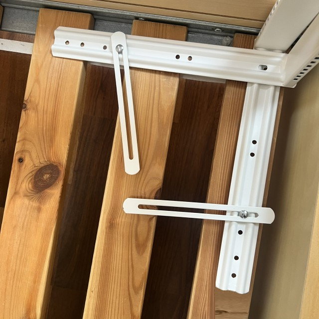 Picioarele barierei, în formă de “L”, intră ~28 cm sub saltea (fixate cu șuruburi pe somieră). În funcție de câte protecții laterale folosești, poți proteja mai multe laturi ale patului.