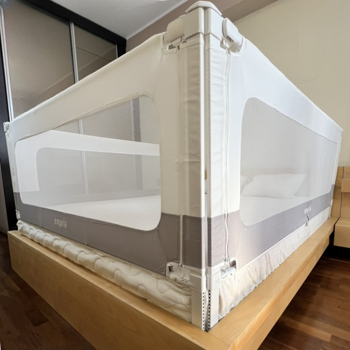 Cu o protecție laterală de pat bine montată, nu mai trebuie să dormi “iepurește”, temându-te că cel mic se apropie de marginea patului.